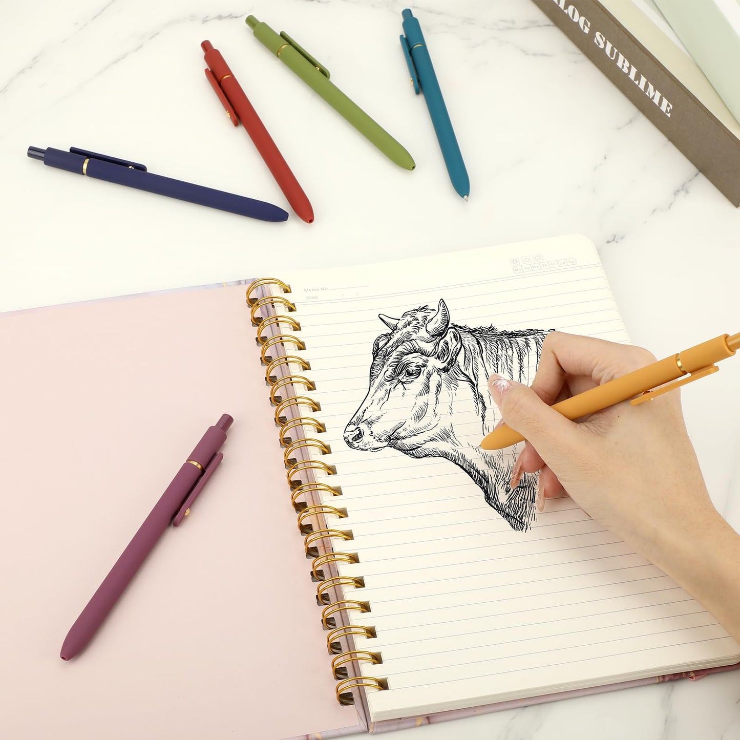 - These gel pens come in a set of six with quick-drying black ink and a sleek minimalist design to meet your daily writing needs. The 0.5mm fine points deliver smooth, precise lines without smudging or fading, thanks to the reliable rollerball ink. Their retractable mechanism and sturdy clip make them easy to carry and prevent loss. Ideal for writing, sketching, or journaling, these pens suit both children and adults. They also make thoughtful, practical gifts for friends, family, or colleagues on special occasions like birthdays and holidays.